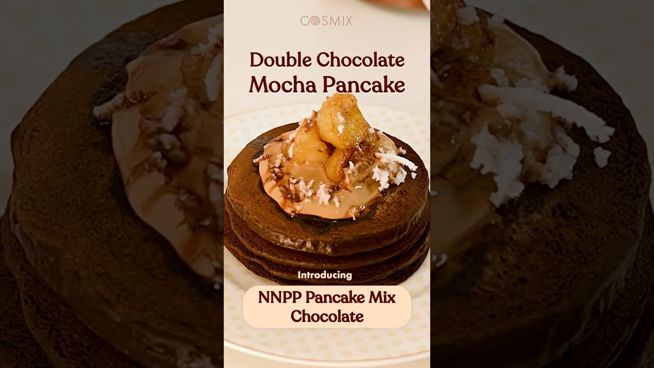 🄣 In a bowl, mix pancake mix with cocoa powder and espresso powder (if using). Add plant milk and stir until smooth.
